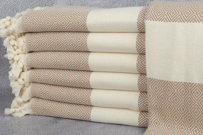 Toalla turca personalizada, patrón de diamantes marrón claro, 40x71 pulgadas