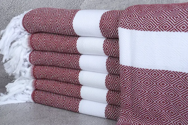 Toalla de playa bordada, toalla de diamantes color burdeos, 71x40 pulgadas