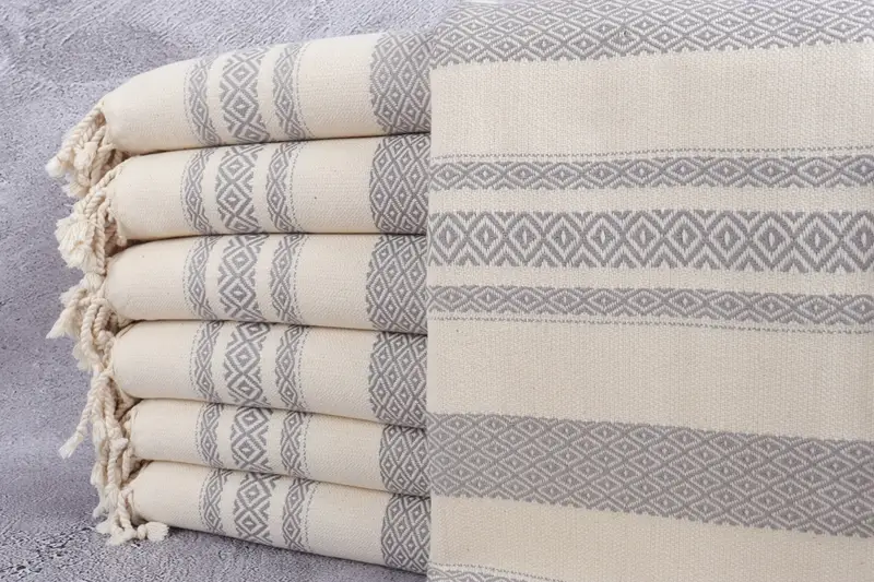 Toalla de playa turca con patrón de diamantes grises, secundario beige, 36 x 71 pulgadas