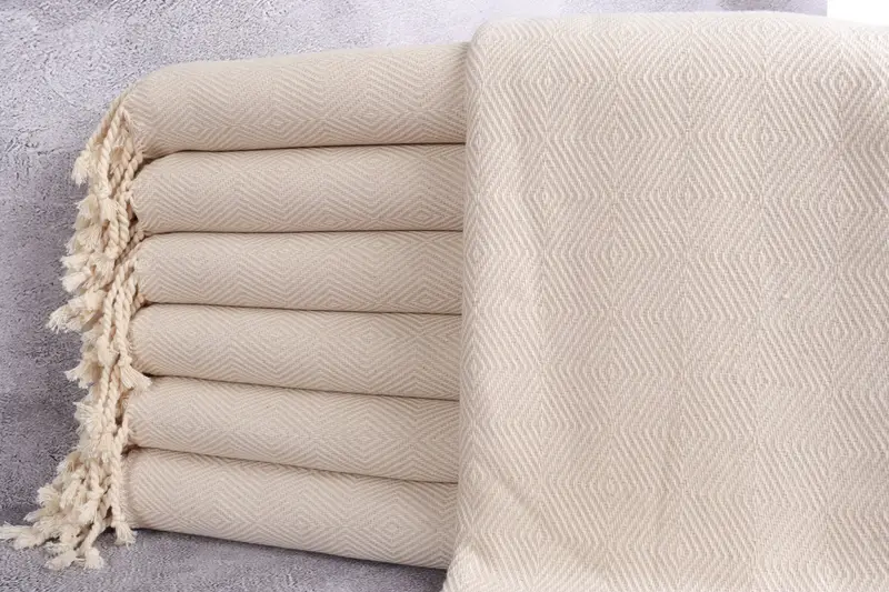 Toalla turca orgánica Diamond Peshtemal, beige claro, 40 x 74 pulgadas