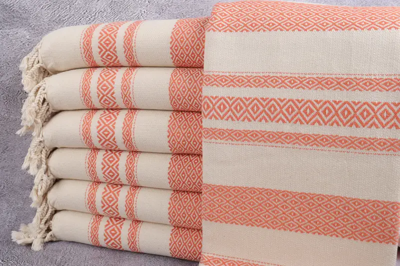 Toalla turca personalizada, peshtemal de diamante naranja, 36 x 71 pulgadas