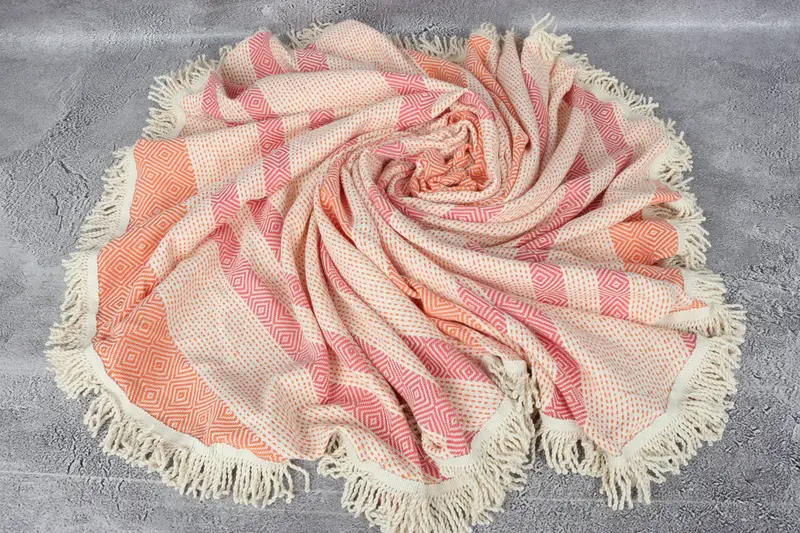 Toalla de diamante redonda personalizada hecha a mano, algodón orgánico, 63x63 pulgadas