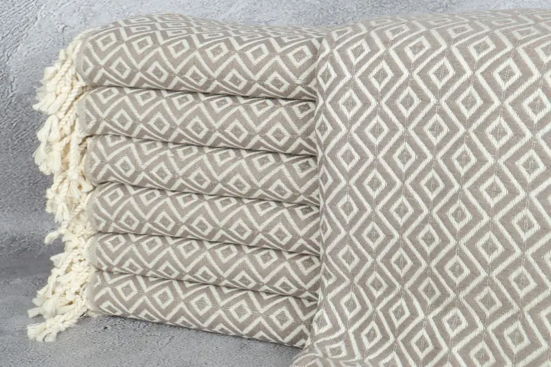 Toalla de playa turca personalizada con diamante marrón personalizado, beige, 40 x 71 pulgadas