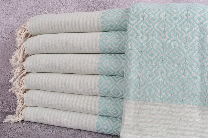 Toalla turca de algodón orgánico Diamond Peshtemal, menta, 38 x 75 pulgadas