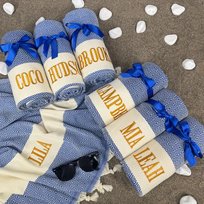 Toalla de playa personalizada de algodón orgánico con tejido de diamantes beige, 40 x 71 pulgadas