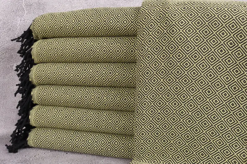 Toalla de Playa de Algodón Turco Beige Diamante, 40x71 Pulgadas