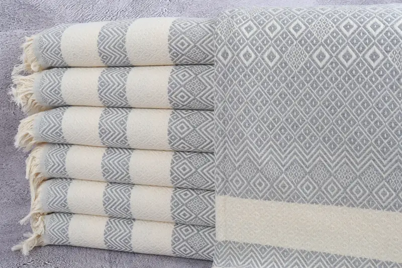 Toalla de playa peshtemal con diamantes personalizada, gris, 40 x 71 pulgadas