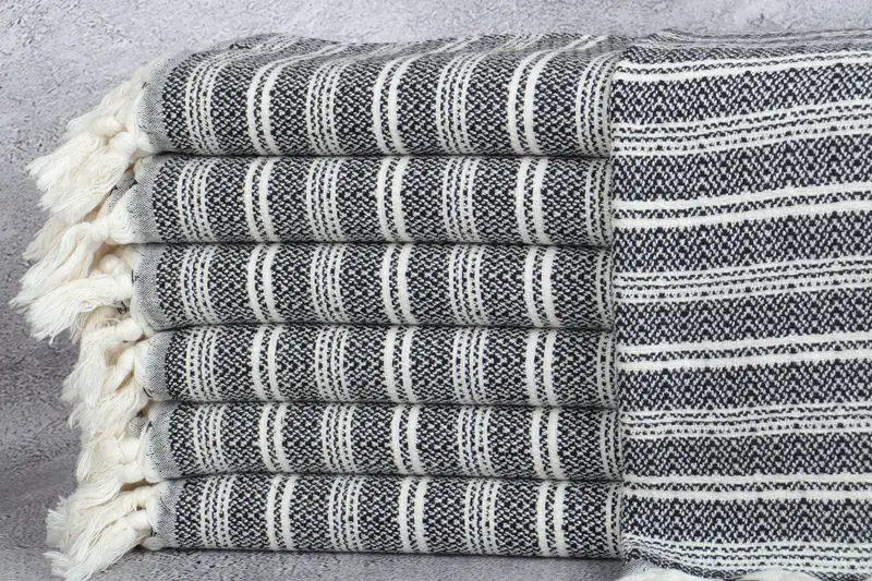 Las fibras de algodón turco de primera calidad garantizan una alta absorbencia y durabilidad. Caracterizadas por una técnica tejida a mano, estas toallas miden 18x32 pulgadas o 45x80 centímetros y pesan aproximadamente 120 gramos. Las variaciones en las dimensiones, hasta 2" o 5 cm, son inherentes al proceso de tejido a mano.