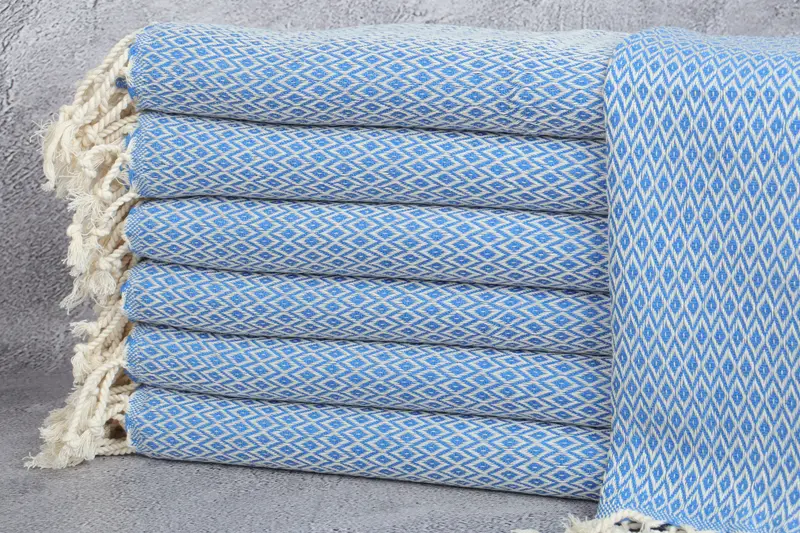 Toalla de Mano Turca Azul Petróleo con Patrón de Diamantes, 20x40 Pulgadas