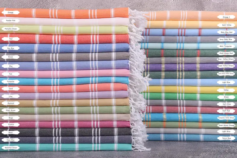 Las toallas turcas se caracterizan por su composición de algodón orgánico y una absorbencia superior, lo que garantiza un producto ligero y muy funcional. El material se teje utilizando técnicas tradicionales, lo que da como resultado una toalla que se puede utilizar por ambos lados. Las dimensiones de la toalla son 24x40 pulgadas o 60x100 centímetros, con una tolerancia de 2 cm, y pesa 100 gramos. El tejido a mano puede introducir ligeras variaciones en estas medidas.