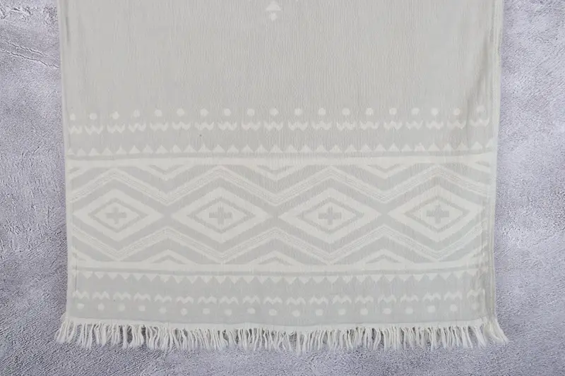 Caracterizada por técnicas de tejido a mano, la toalla turca orgánica está hecha de algodón turco premium ecológico, lo que garantiza un material liviano y altamente absorbente. Estas toallas, que miden 24x40 pulgadas o 60x100 centímetros, con una tolerancia de hasta 2 pulgadas o 5 centímetros, pesan 128 gramos cada una. Como resultado de un producto multiusos, las toallas se pueden utilizar como paños de cocina, toallas de baño o toallas de playa.