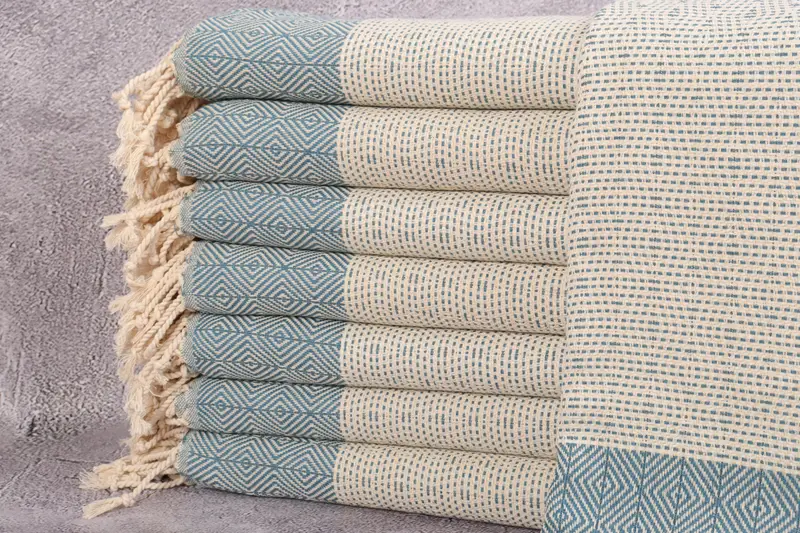 Toalla de playa de algodón turco con estampado de diamantes beige, 40 x 71 pulgadas