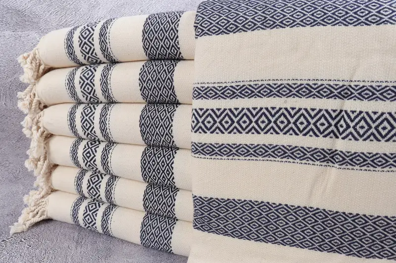 Toalla Turca Orgánica Playa Diamante Azul Marino, 36x71 Pulgadas