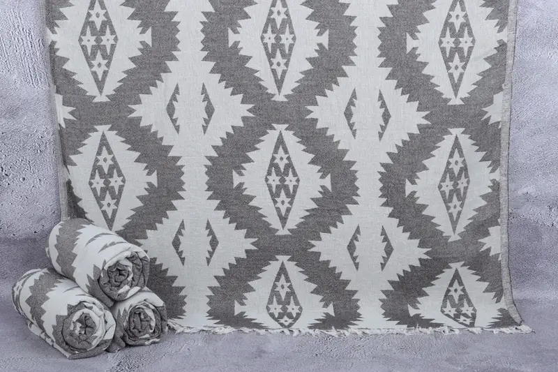 El algodón turco garantiza una absorbencia superior y una textura más suave después del lavado. Caracterizado por un meticuloso tejido a mano, este producto exhibe una tolerancia de hasta 2 pulgadas (5 cm) en dimensiones. Las dimensiones de la toalla son 36x71 pulgadas o 90x180 centímetros, con un peso de 290 gramos.