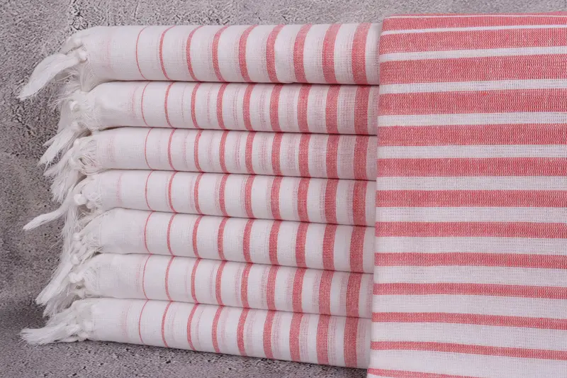 Las toallas de algodón turco orgánico, que garantizan una aplicación versátil, se caracterizan por su naturaleza liviana y de tejido plano, lo que resulta en un consumo mínimo de espacio. Tienen un tamaño de 40x69 pulgadas o 100x175 centímetros con una tolerancia de 2 pulgadas o 5 centímetros debido a las técnicas de tejido manual. Las toallas, que pesan 240 gramos, se pueden utilizar en diversos entornos, como la cocina, el baño y los viajes.