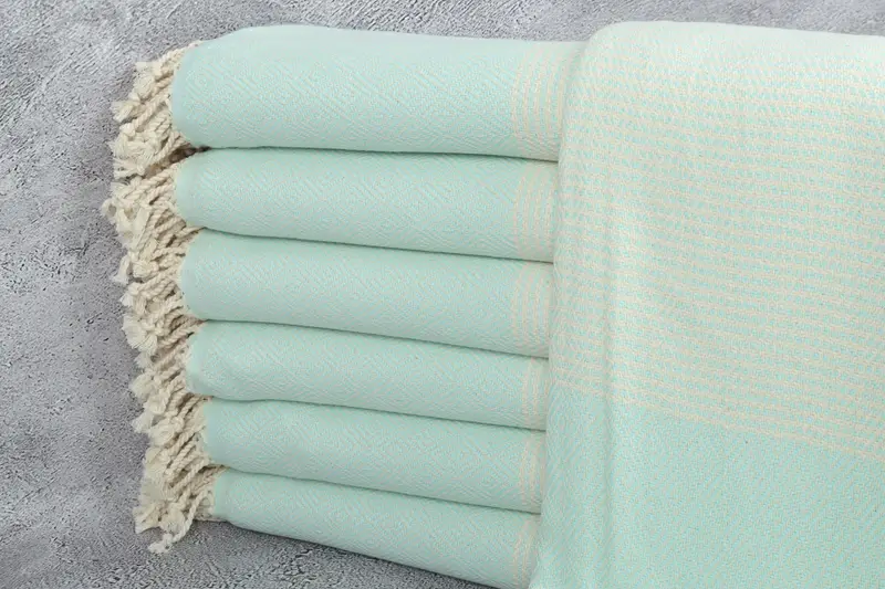 Para garantizar una calidad superior, las toallas turcas hechas a mano están hechas de algodón turco ecológico de primera calidad, que se caracteriza por su naturaleza liviana y compacta. Dando como resultado versatilidad, estas toallas miden 40x71 pulgadas o 100x180 centímetros y pesan 410 gramos. El proceso de tejido permite una tolerancia de 2 pulgadas o 5 centímetros.