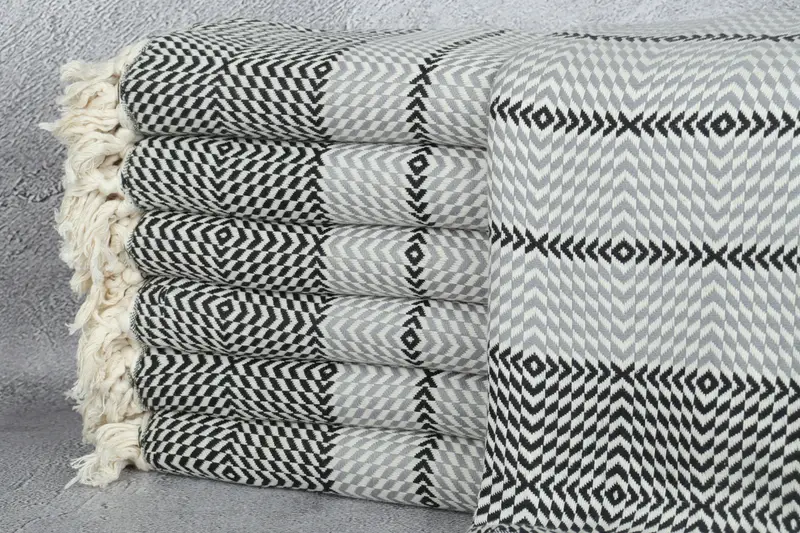 Toalla de playa con monograma a rayas de diamantes en negro y gris, 40 x 79 pulgadas