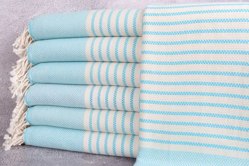 Toalla turca personalizada con rayas turquesas, beige, 40 x 75 pulgadas