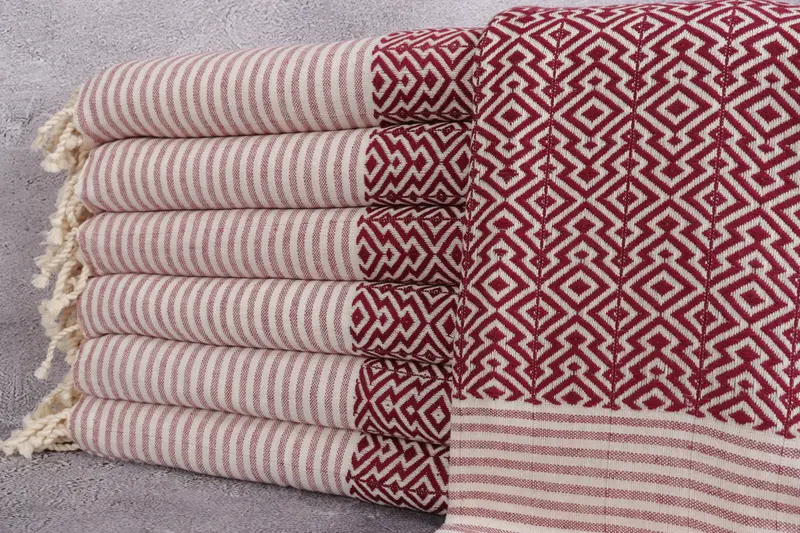Toalla de playa turca Diamond Borgoña, 38x75 pulgadas