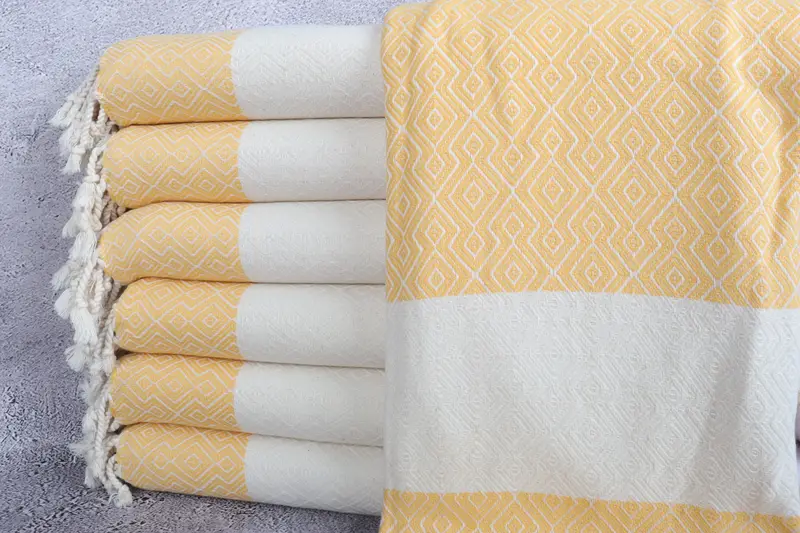 Toalla de playa Peshtemal Yellow Diamond, 38 x 67 pulgadas, algodón turco orgánico