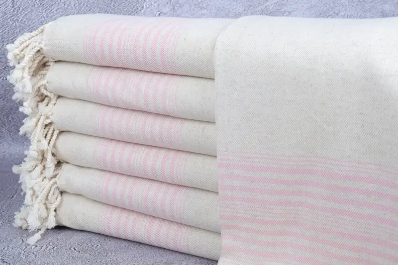 Toalla de baño turca Peshtemal a rayas rosas, 40 x 79 pulgadas