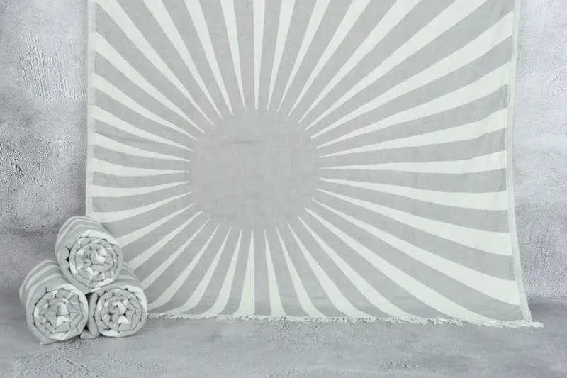 Toalla de playa de algodón turco con estampado de sol gris oscuro, 36 x 71 pulgadas
