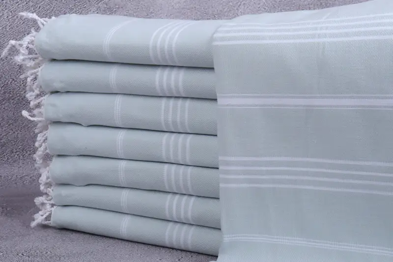 Toalla de algodón orgánico a rayas verde agua, 40x71 pulgadas