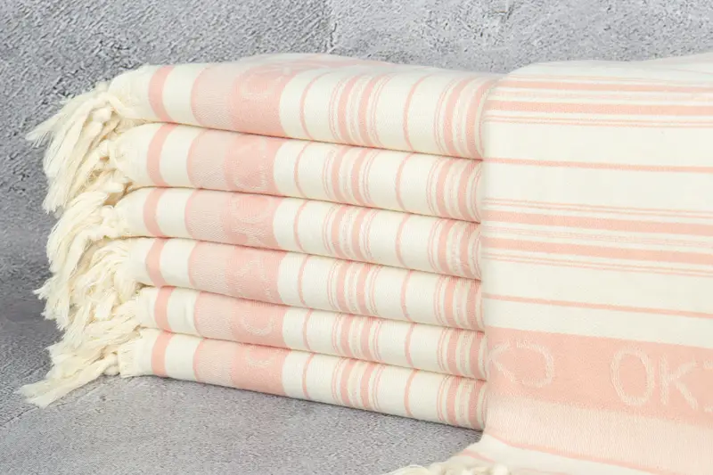 Toalla de baño turca personalizada a rayas rosa claro, 40x71 pulgadas