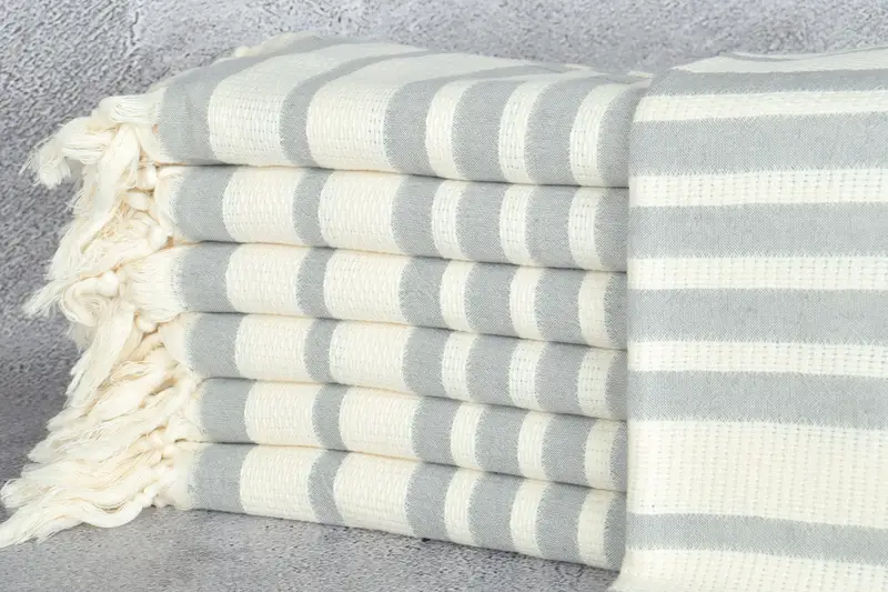 Toalla turca personalizada a rayas gris oscuro, orgánica, 34x71 pulgadas