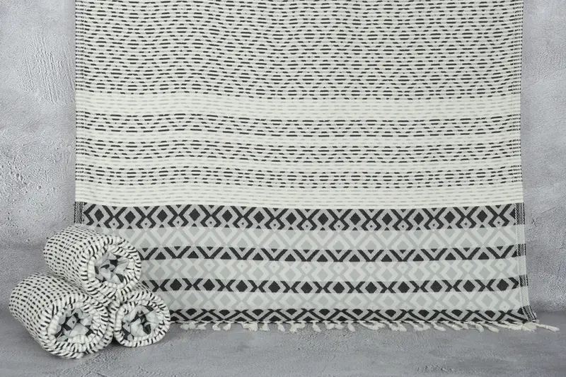 Toalla Turca con Monograma de Algodón Orgánico Negro-Gris Claro, 40x71 Pulgadas