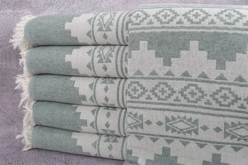 Toalla de playa orgánica patrón azteca verde oscuro, 36 x 71 pulgadas
