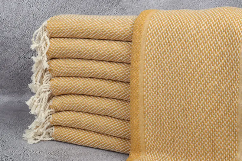 Toalla turca hecha a mano mostaza geométrica, 38x63 pulgadas
