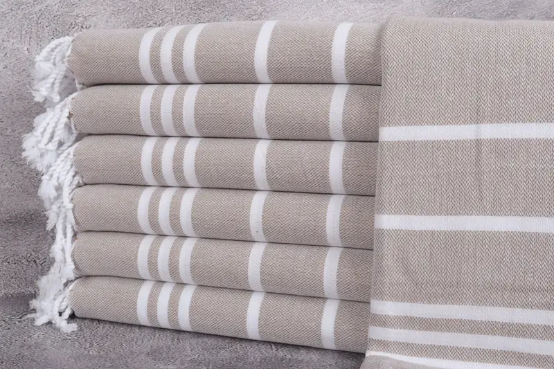 Toalla de algodón orgánico, peshtemal marrón a rayas personalizada, 40 x 71 pulgadas