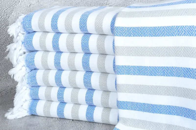 Toalla de camping a rayas azul-gris, 40 x 63 pulgadas, algodón turco