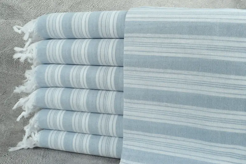 Toalla de playa orgánica a rayas azul, beige, 38x67 pulgadas
