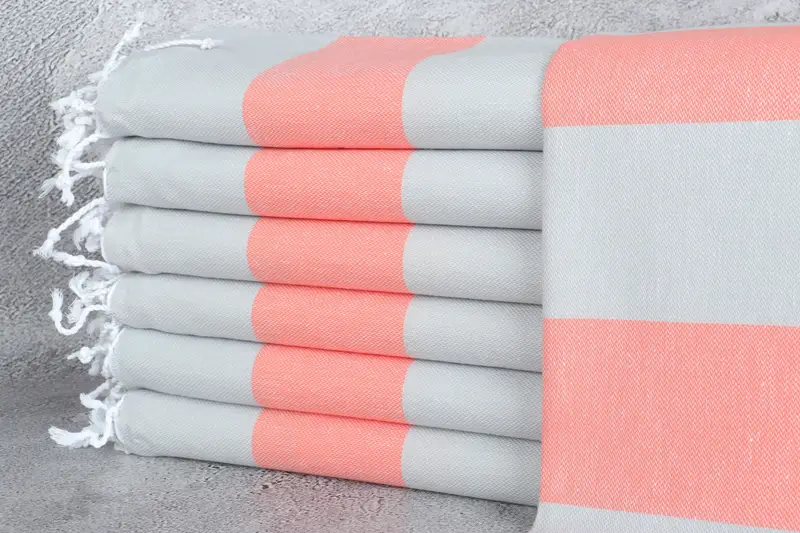 Toalla de playa turca con monograma de rayas gris coral, 40 x 71 pulgadas