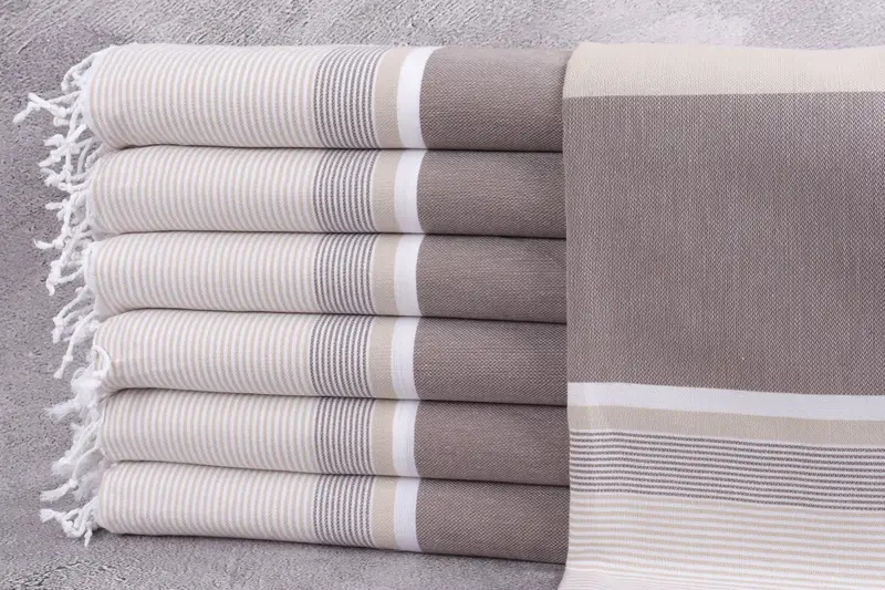 Toalla de rayas orgánica personalizada, color beige y marrón, 40 x 79 pulgadas