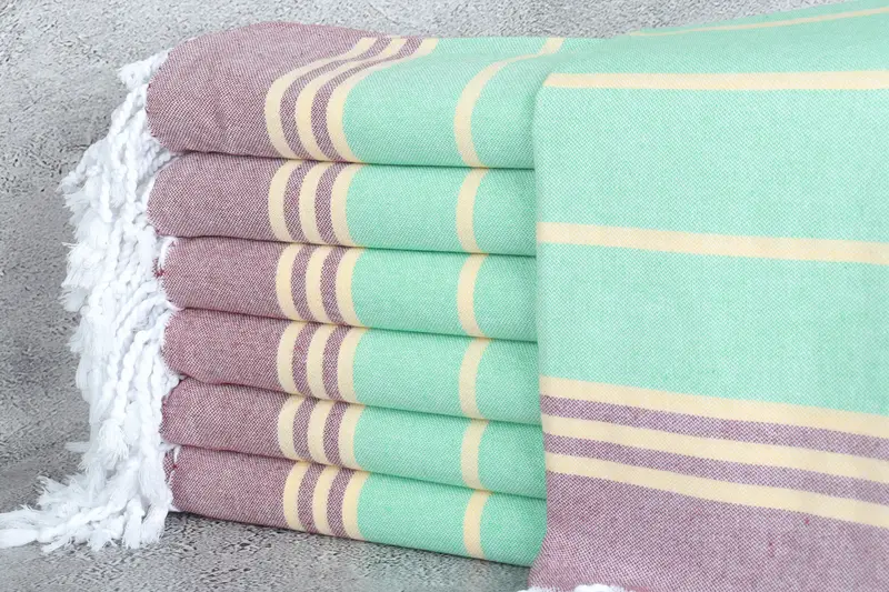 Toalla de playa personalizada de regalo personalizada, rayas verde burdeos, 36 x 71 pulgadas