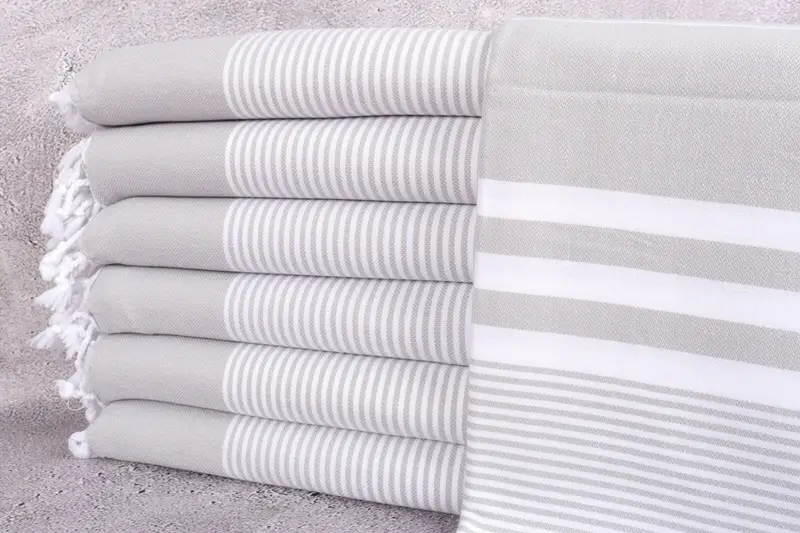 Toalla de playa orgánica, rayas beige de algodón turco personalizadas, 40x71 pulgadas