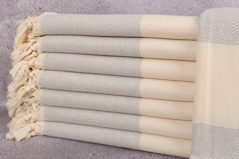 Toalla de playa orgánica al por mayor de algodón turco, color beige Chevron, 40 x 71 pulgadas