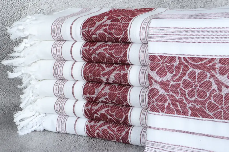 Toalla de playa personalizada de algodón turco, color burdeos, floral, 40 x 71 pulgadas