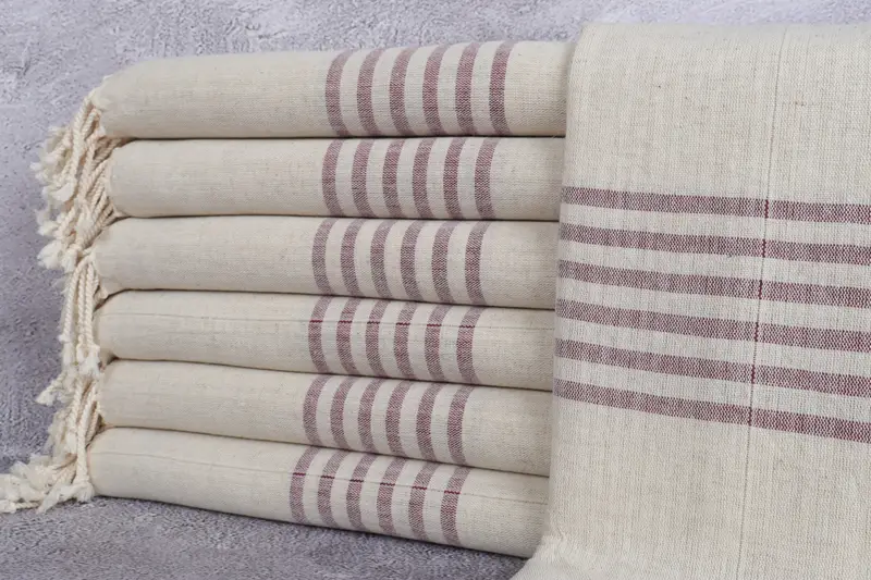 Toalla de Playa de Algodón Turco Rayas Beige, 36x67 Pulgadas