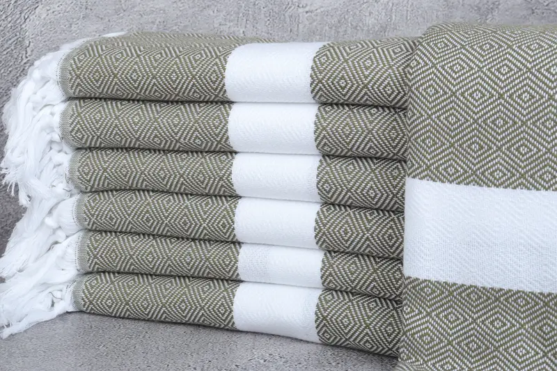 Toalla turca de playa, toalla de diamante verde caqui, 71x40 pulgadas