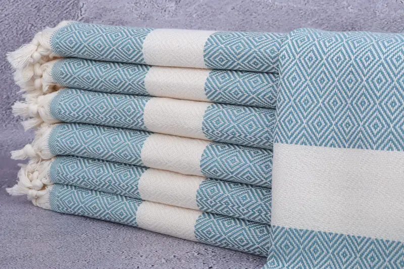 Toalla de té turca Patrón de diamante beige, toalla pequeña personalizada, 20x36 pulgadas