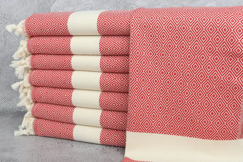 Toalla de Mano Diamond Algodón Orgánico Rojo, 20x36 Pulgadas