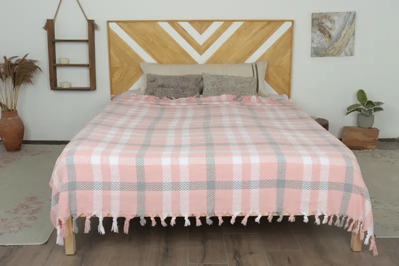 Manta tejida a rayas Dusty Rose personalizada, beige, 79x89 pulgadas