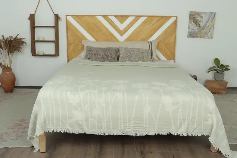 Manta de playa de algodón turco floral menta, beige, 83 x 91 pulgadas