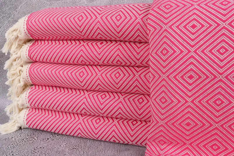 Manta turca fucsia, manta de diamantes, 79x91 pulgadas