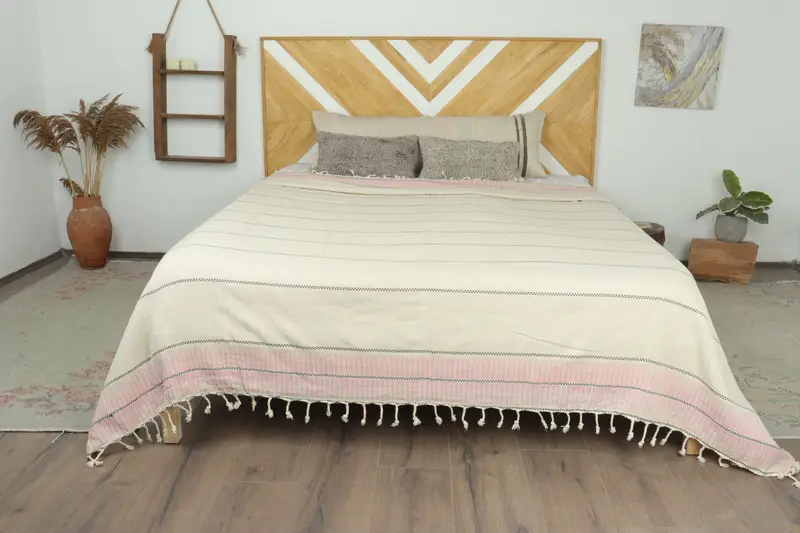 Colcha bohemia de lino de 95x103 pulgadas con rayas rosas personalizadas