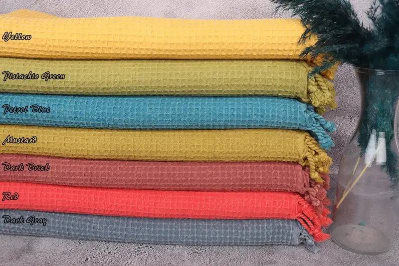 Manta tipo gofre de algodón turco con diseño de cachemira, color beige, 67 x 91 pulgadas